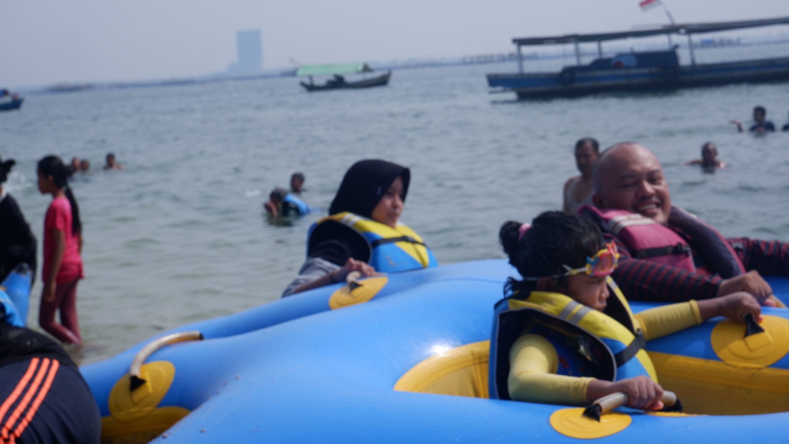 di pulau khayangan ini, ada wahana water sport yaitu banana boat dan sofa boat, sebuah permainan yang menguji adrenalin bagi yang berani dan suka tantangan, wah seru sekali, di group travel Happyone_Adventure  ada keluarga Bapak Zulhan yang siap mencoba permainan tersebut, debut pertamanya dengan sofa boat, pak Zulhan, Gerhan, Mutia, dan si kecil Ulfa. setelah terombang-ambing dan terontang anting di tengah laut dalam permainan Sofa Boat, mereka penasaran, hingga lanjut mencoba permainan Banana Boat, dengan peserta 3 orang, Gerhan, Mutia dan Pak Tarmin yang nekad juga meski usia sudah nyaris 60tahun.